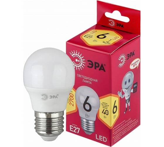 Светодиодная лампа ЭРА LED P45-6W-827-E27 R